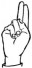 На ћирилици написано ШАЛЕ КРИВЧЕВИЋ састоји се из 13 слова [?]. Исписано ћириличном једноручном азбуком за глувонеме: